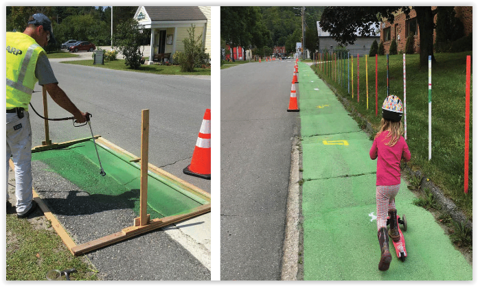 As the weather warms and our economy begins to re-open, communities are quickly figuring out how to best use sidewalks, parking spots, streets, and parks to enable outdoor dining and shopping. They also are considering how to provide space for those travelling on foot or by bicycle. The Local Support and Community Action Team of the Governor’s Economic Mitigation and Recovery Task Force recently hosted an online workshop – Streets for Success – about reconfiguring outdoor spaces in Vermont towns for safe dining, shopping, biking and walking.